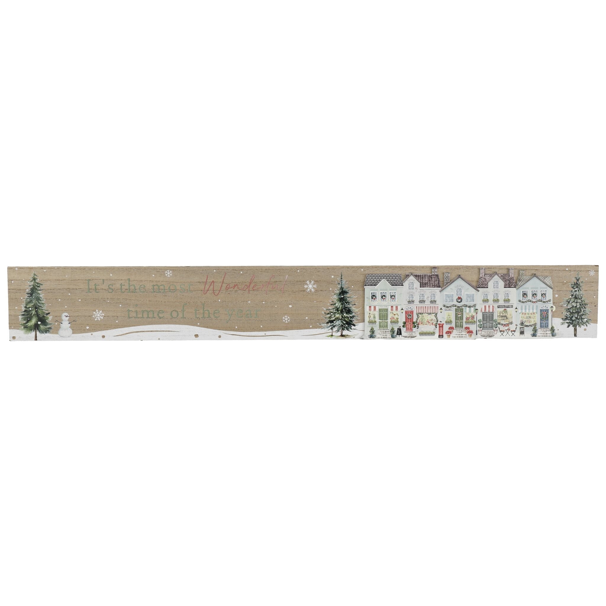 Celebrate the season with this charming wooden plaque, featuring a heart-warming message and a beautifully illustrated winter village scene.