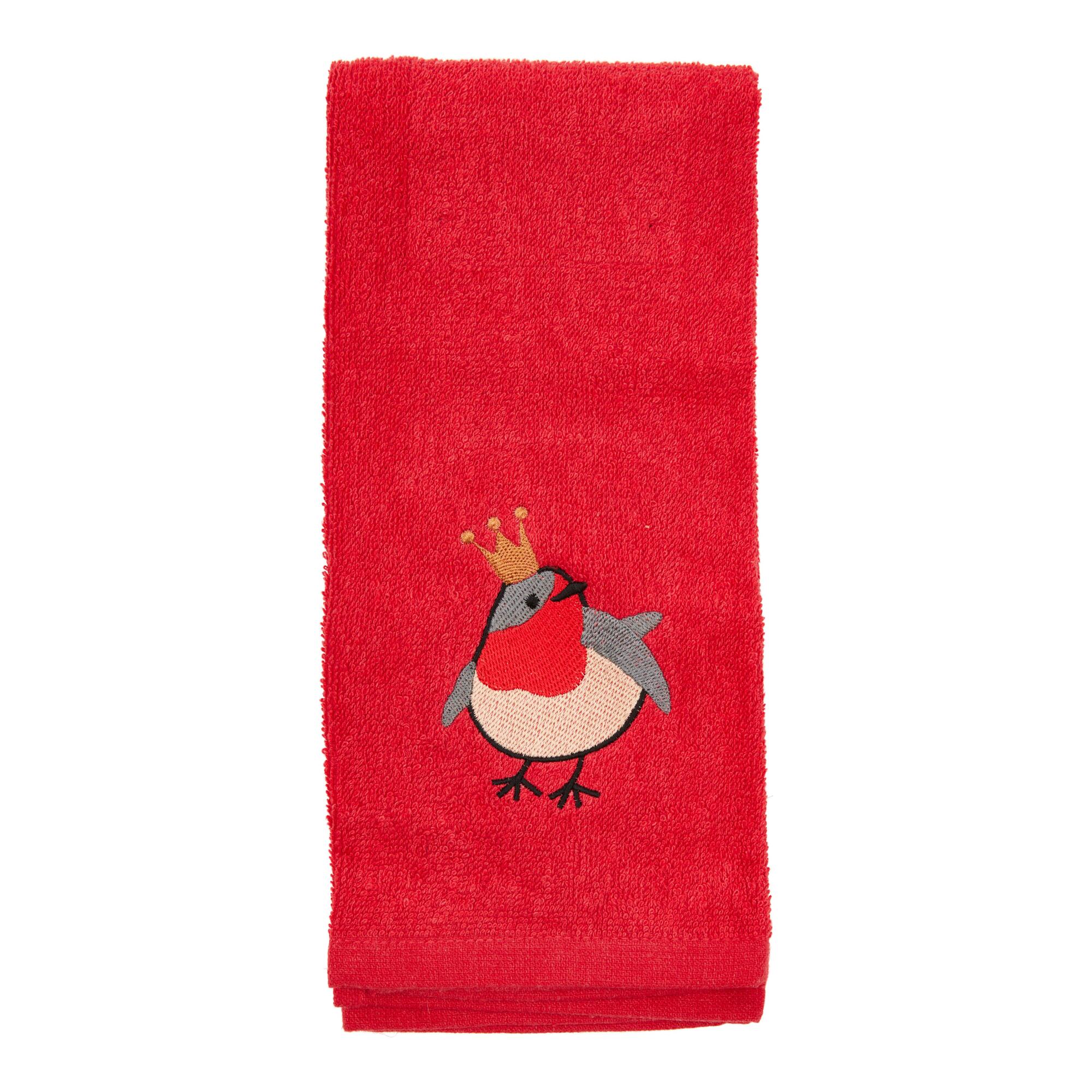 Add a cheerful touch to your bathroom with this soft cotton towel, ideal for offering guests something fresh and festive. The embroidered robin design brings a playful pop of colour, making it a lovely accent on towel rails or stacked beside a sink. Made from absorbent 100% cotton, it’s practical for everyday hosting while still easy to care for.