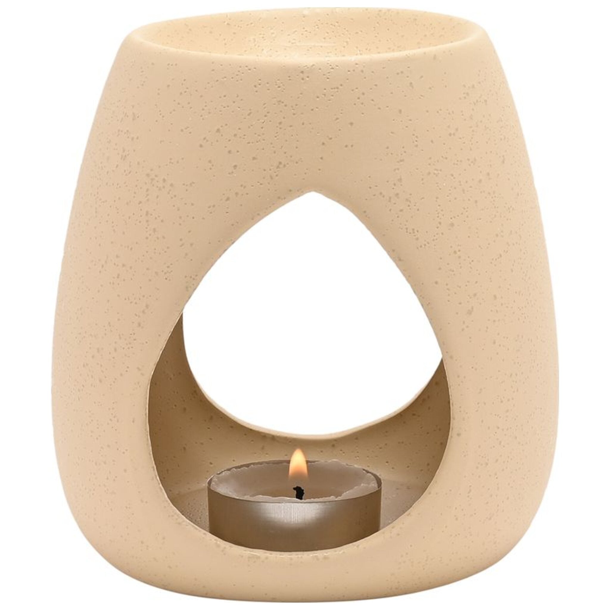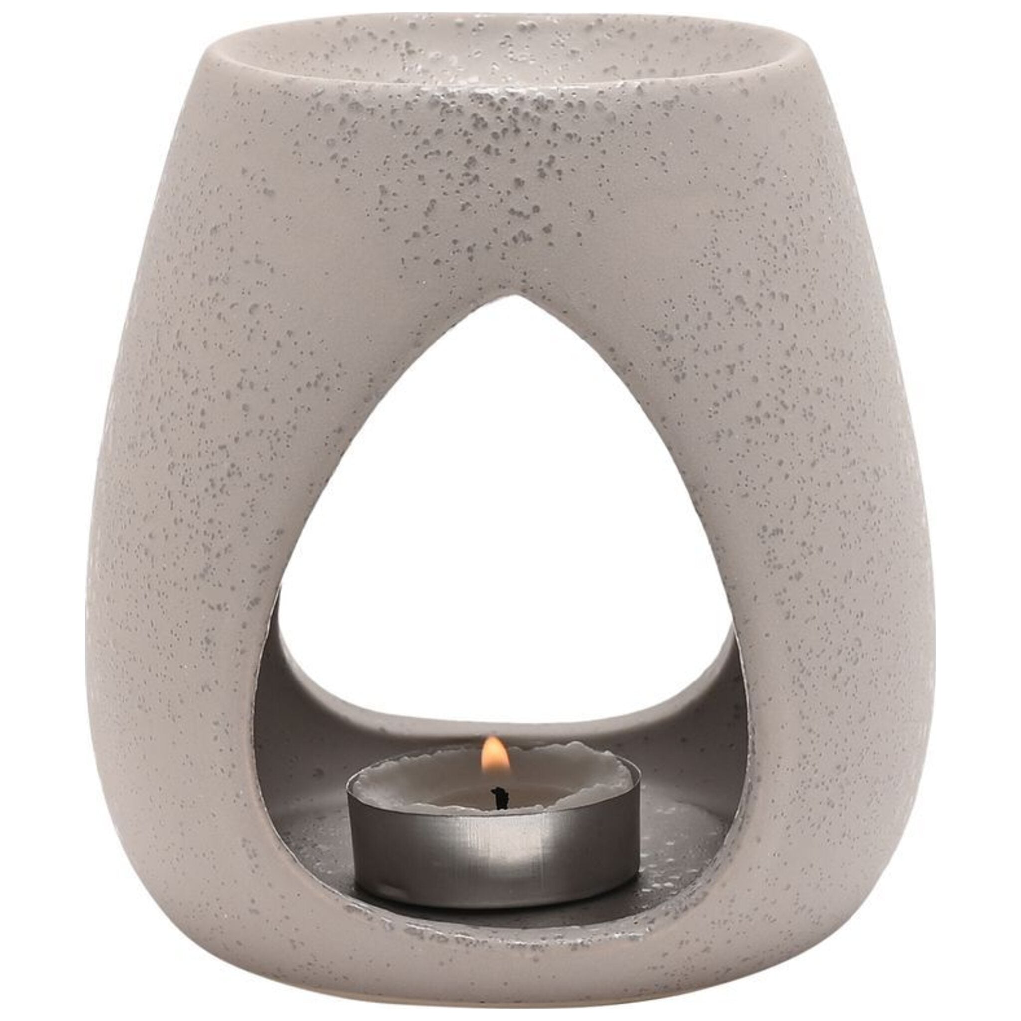 Designed for a calming ambiance, it comes in a minimalist design and is made from stoneware with a speckled finish.